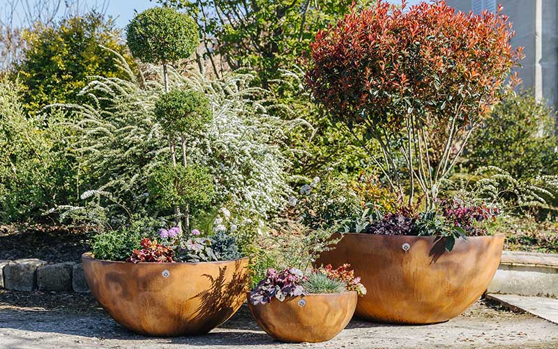 - Jardinières en acier : robustes, modernes et élégantes, idéales pour un rendu contemporain.