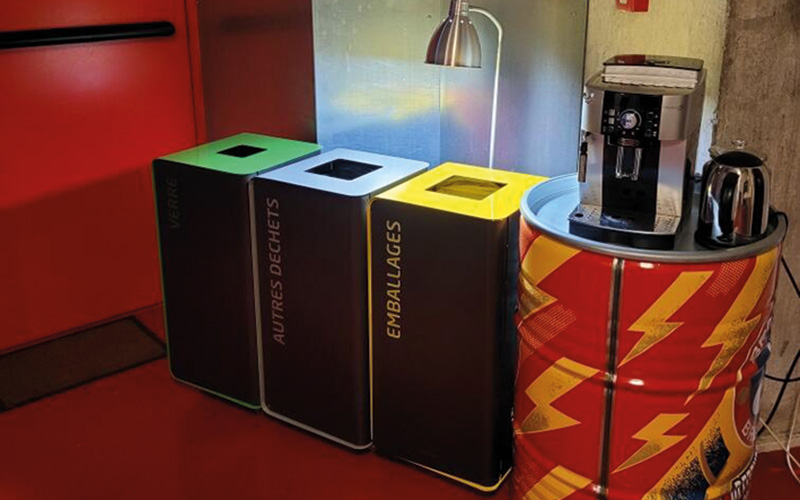 Un autre projet significatif a été mené avec La Sirène, la célèbre salle de spectacle située à La Rochelle. L’objectif était de mettre en place une solution de tri sélectif intérieur efficace pour les différents espaces du site.