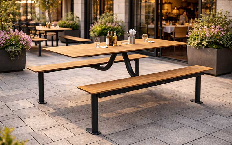 Le mobilier urbain en compact est aujourd’hui reconnu comme un gage de qualité, combinant robustesse technique et esthétique soignée.